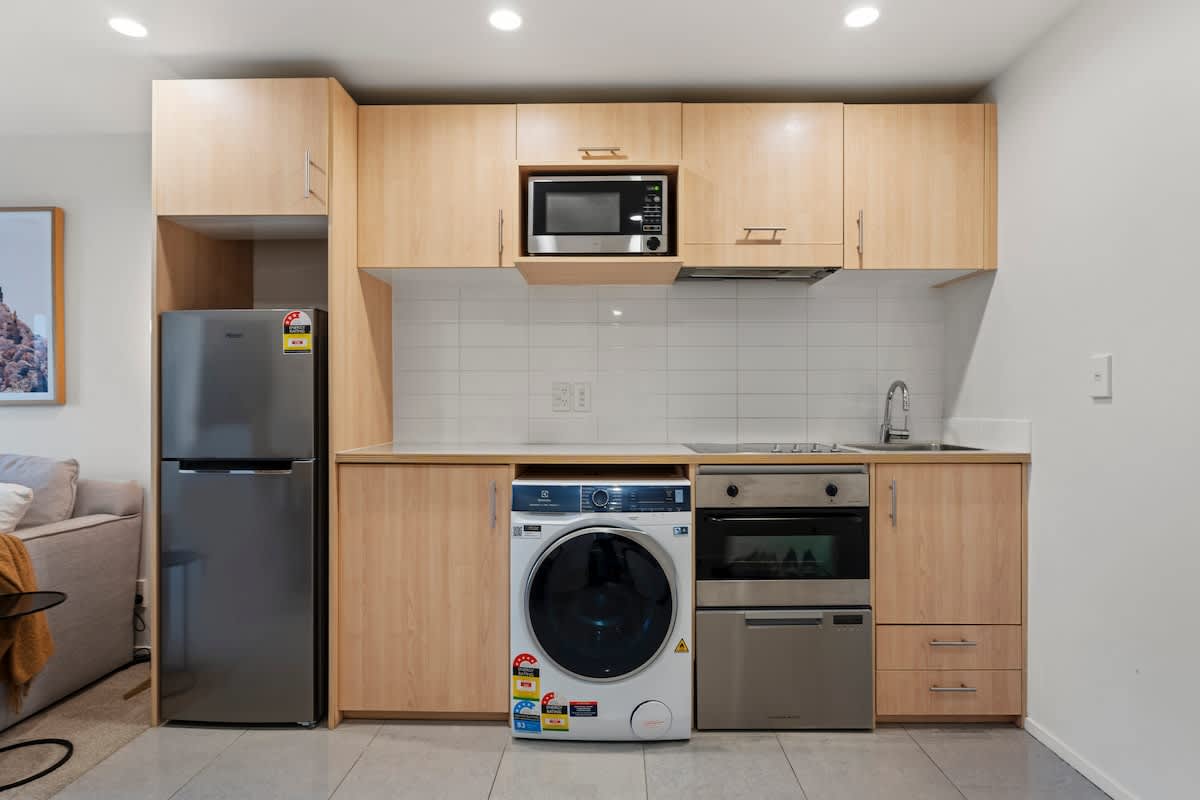 Amenities: We provide a starter pack of amenities to last you the first few days of your stay 450ml shampoo and conditioner, 450ml bodywash, 2 x tea/coffee, 3 x toilet paper rolls, 1 pack of laundry powder, 1 pack of dishwashing powder, dishwashing liquid, cleaning spray and wipes) but you will need to purchase your own amenities after these run out. Please do not take the large refillable bottles provided as we’ll need to charge for replacement.