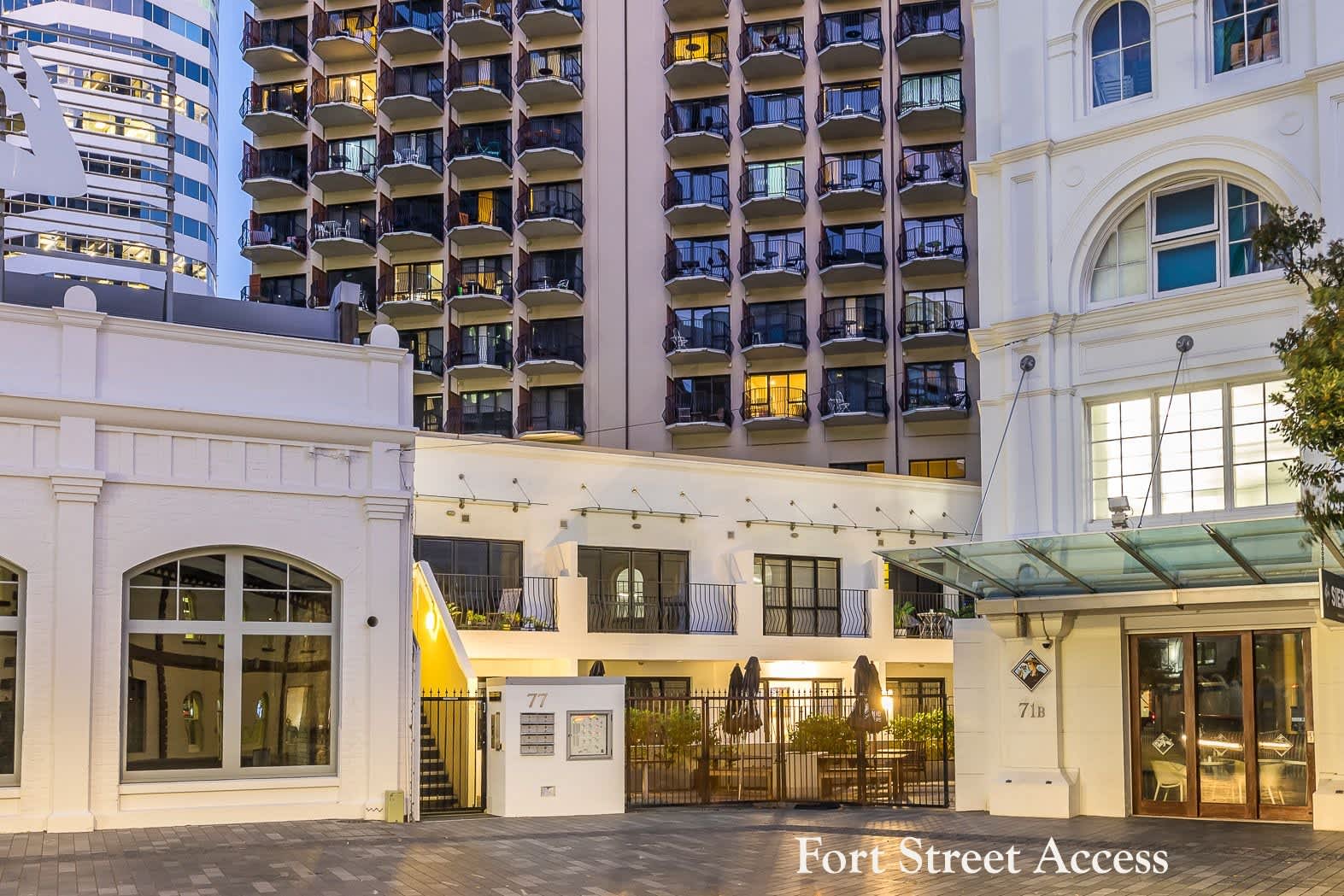 Parking: There is a free carpark at the building allocated to this property. Please note that the parking area is uncovered and ungated. Parking can be accessed from the ground floor on Fort Street, with both entry and exit available through the apartment building and the car park building