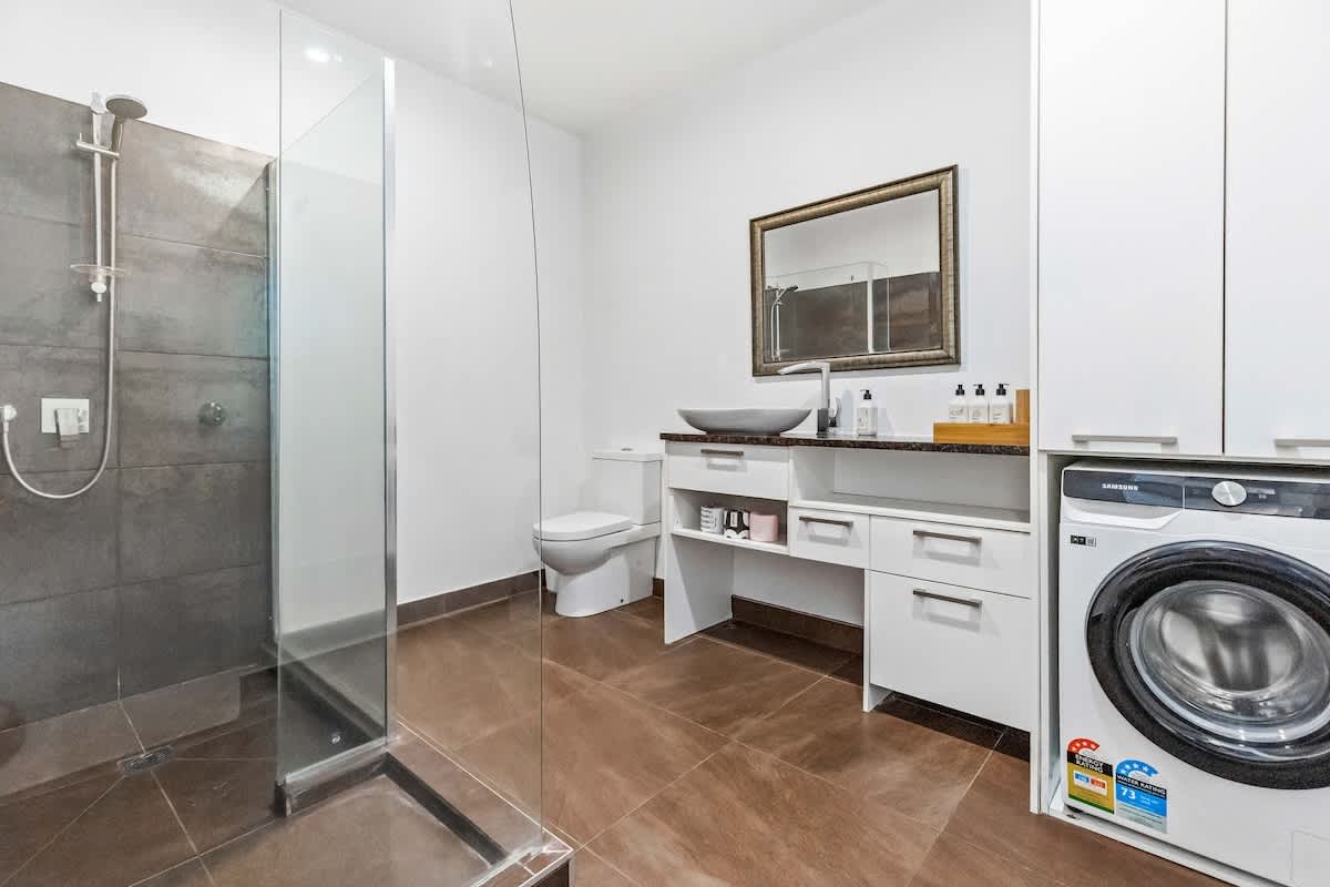 The main bedroom has a king bed and its own ensuite. The second bedroom has two single beds, making the layout suitable for couples, friends, or small families. The main bathroom is spacious and has a washer wish is free for your use. Please note there is not a dryer but a clothes drying rack is provided.