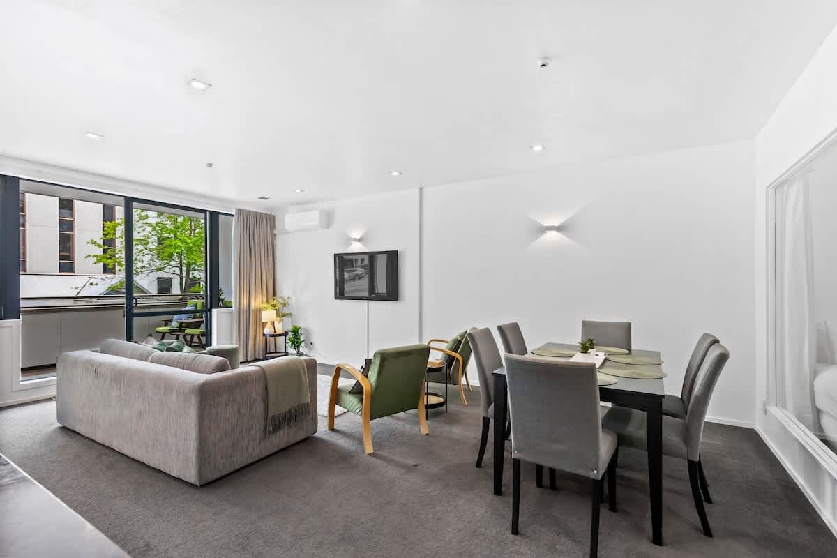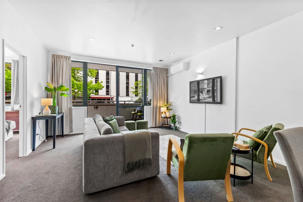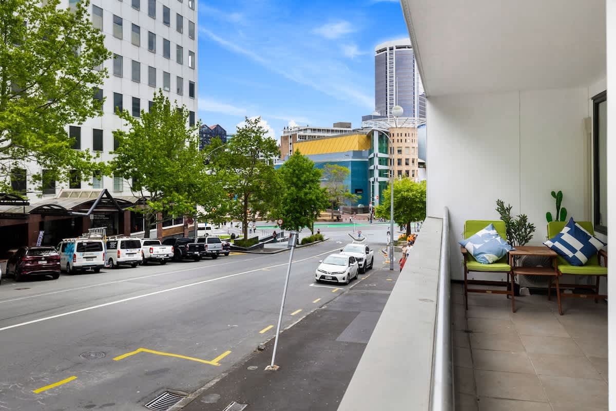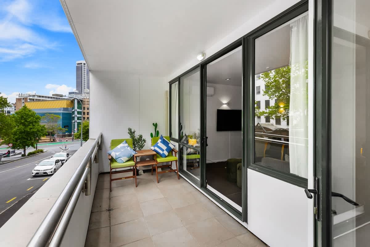 This modern 2-bedroom, 2-bathroom apartment offers comfortable city living in a very convenient Auckland Central location. It features a generous open plan living and dining area, a full kitchen with full size appliances, air conditioning, and a covered balcony for relaxed indoor and outdoor use.