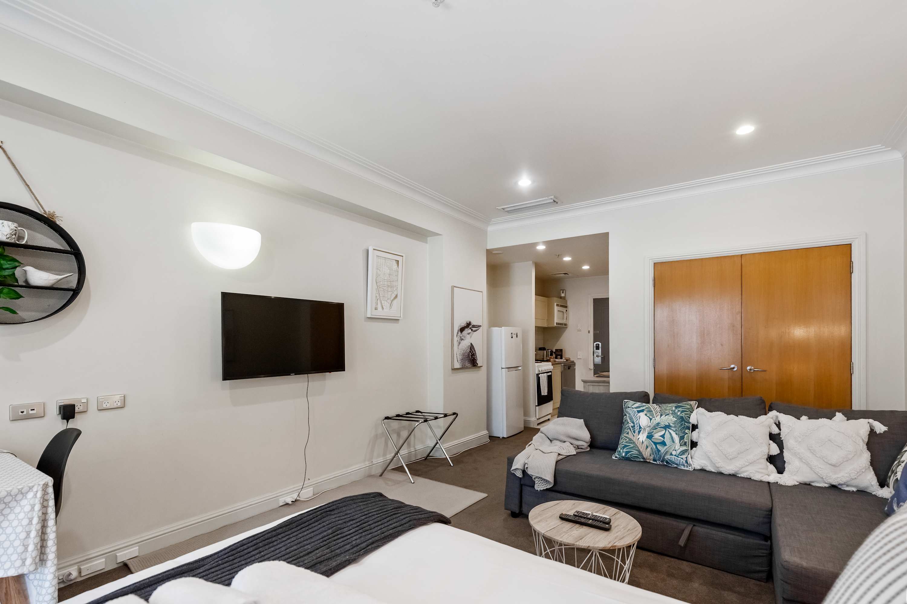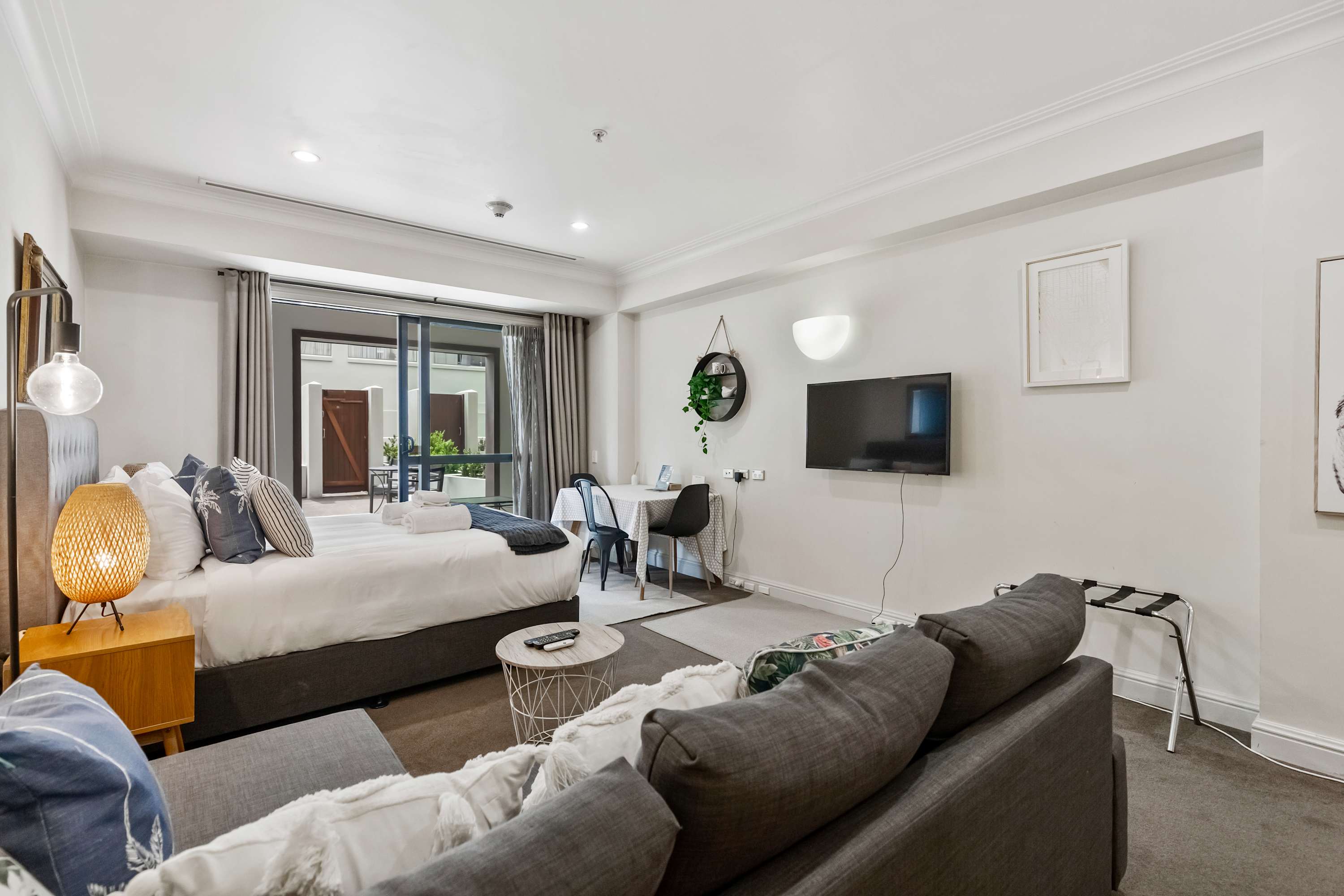 Relax in the spacious, fully self-contained studio featuring a large private outdoor area with an undercover section, perfect in all weather. Unwind with the 43-inch Smart TV. A comfortable queen sofa bed with a bamboo topper accommodates up to two additional guests.