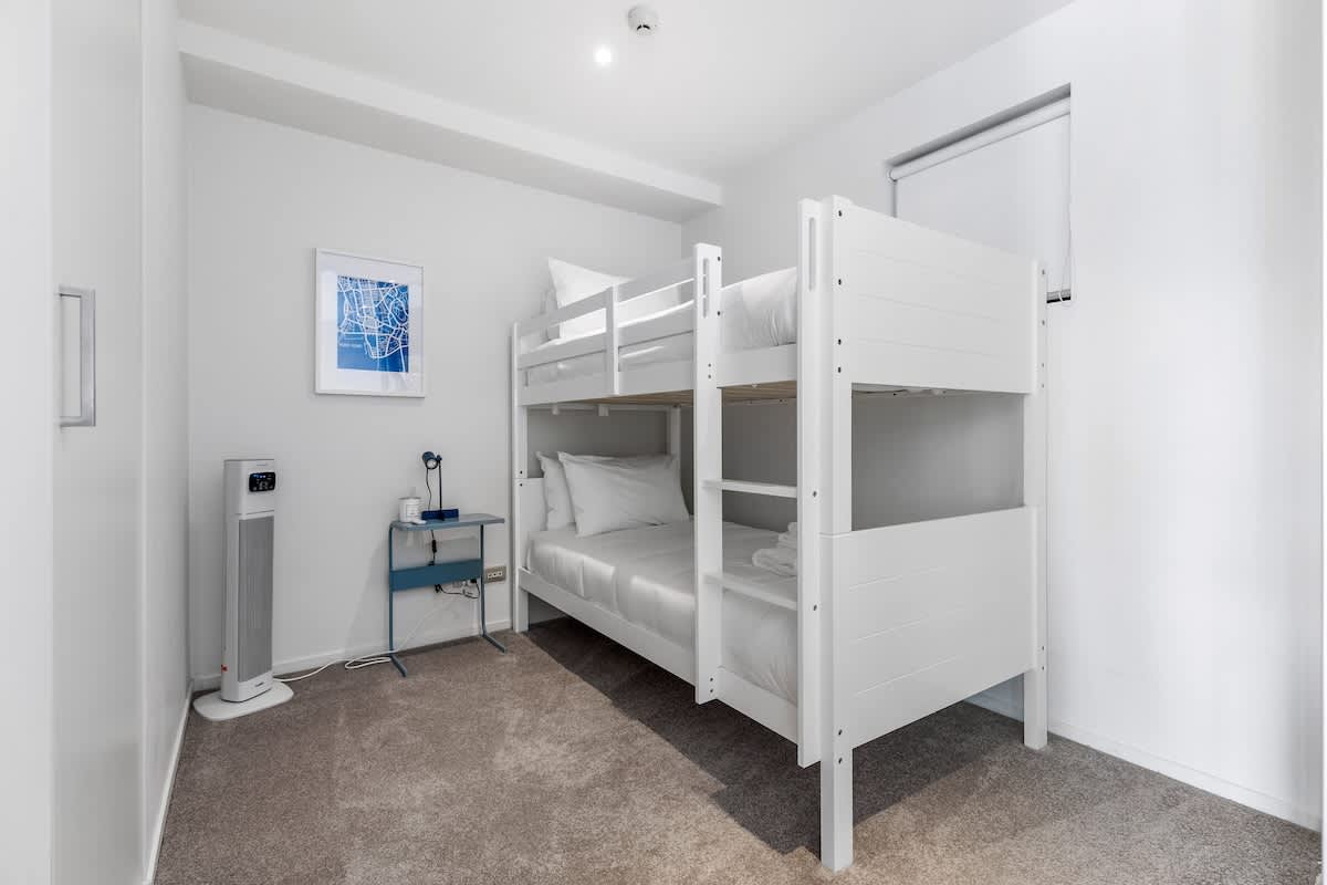 The second bedroom features a bunk bed with two single beds. This space is ideal for children or additional guests.