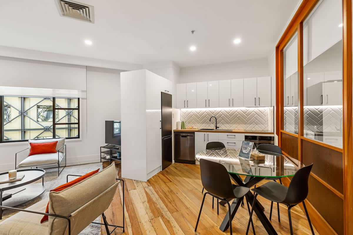 Building: This apartment is part of a heritage hotel building with a mix of hotel rooms and privately owned apartments. Some apartments, including this one, have fixed windows that do not open due to heritage and safety requirements.